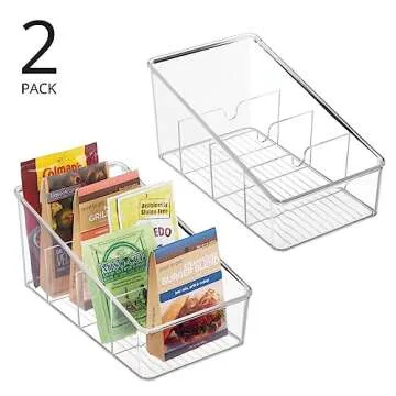 mDesign Plastic Food Packet Organizer Bin - Storage Station for Kitchen, Pantry - Holder for Spice Pouch, Dressing Mix, Sauce, Hot Chocolate, Tea, Sugar Packets, Ligne Collection, 2 Pack, Clear