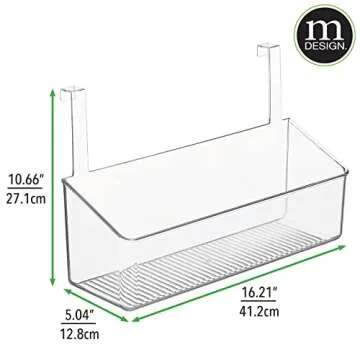 mDesign Plastic Kitchen Over Door Storage Basket Organizers for Kitchen Organization - Hanging Back of Door Holder Rack for Aluminum Foil, Plastic Wrap, or Sandwich Bags, Ligne Collection, Clear