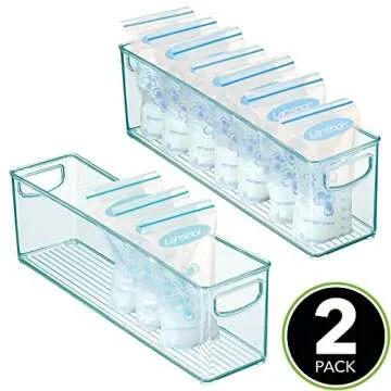 mDesign Plastic Long Stackable Storage Organizer Container, Organization Bin w/Handles for Kitchen, Pantry, Fridge, Freezer, Cabinet, Perfect to Hold Breast Milk - Ligne Collection - 2 Pack, Blue