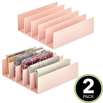 mDesign Plastic Purse Organizer for Bedroom Closet, Shelf Storage - Holds Woman's Purse, Hanging Bag, Zipper Handbag, Tote, Perfect for Space Saving, 5 Sections, Lumiere Collection - 2 Pack - Lt Pink