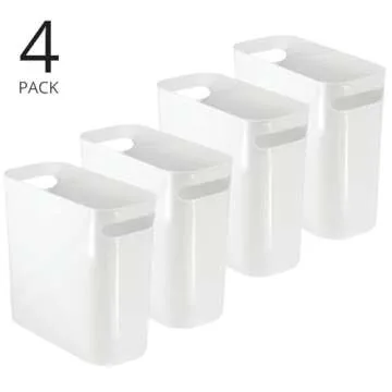 mDesign Plastic Small Trash Can, 1.5 Gallon/5.7-Liter Wastebasket, Narrow Garbage Bin, Handles for Bathroom, Laundry, Home Office - Holds Waste, Recycling, 10" High, Aura Collection, 4 Pack, White