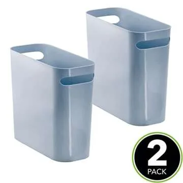Show moreTransform your spaces with the mDesign Plastic Small Trash Can, designed for convenience and style. This set of two wastebaskets offers a compact 1.5-gallon capacity, ideal for fitting into tight spaces like bathrooms, laundry rooms, and home offices. Measuring just 10 inches in height, these narrow garbage bins prove that functionality doesn't have to compromise aesthetics. With a soft light blue hue from the Aura Collection, they add a refreshing pop of color to any decor while seamlessly blending in with your existing setup.