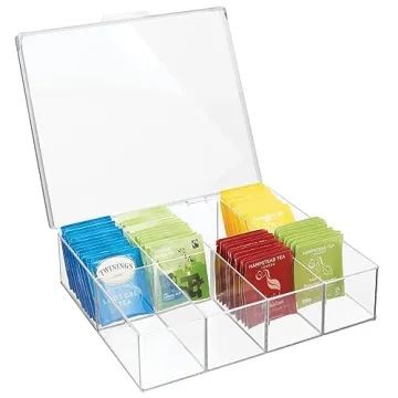 Unlike competitors that may offer similar products, the mDesign Tea Storage Organizer stands out with its sturdy construction and smart design. Many other organizers on the market are either too small or have flimsy lids, which can break easily. The durability and elegant, transparent look of this box ensure that it not only serves its purpose but enhances your kitchen decor. Additionally, the inclusion of 8 sizable sections means you'll never struggle to find space for your items.