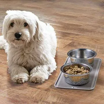 Sized perfectly to fit two feeding bowls, this non-slip square mat keeps food and water bowls secure preventing spills and accidents