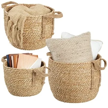 Show moreIf you're looking for a stylish yet functional way to declutter your home, these woven storage baskets from mDesign are the answer! Crafted from natural sea grass, they seamlessly blend elegance with durability. This set includes three generously sized baskets, allowing you to store everything from clothing and accessories to books and toys in an organized fashion. The integrated jute rope handles not only enhance their aesthetic but also make it easy to pull them on and off shelves, providing quick access to your essentials.