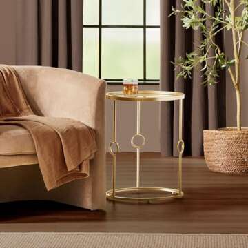 mDesign Round Metal Side/End Table with Decorative Legs, in-Lay Top, Home Decor Accent Furniture for Living Room, Bedroom - Brass/Clear Glass