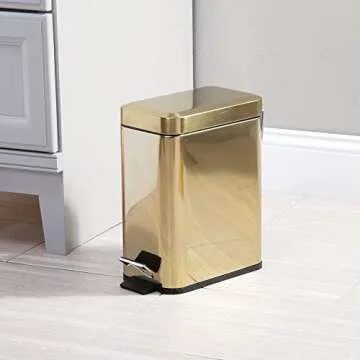 mDesign Small Modern 1.3 Gallon Rectangle Metal Lidded Step Trash Can, Compact Garbage Bin with Removable Liner Bucket and Handle for Bathroom, Kitchen, Craft Room, Office, Garage - Soft Brass