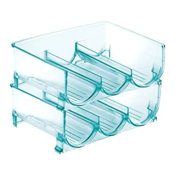 Show moreIntroduce a touch of organization and elegance to your kitchen with the mDesign Stackable Plastic 3 Bottle Refrigerator Wine Rack. This stylish storage organizer is designed not only to keep your favorite beverages within easy reach but also to enhance your home décor with its modern and sleek blue tint. Perfect for champagne, wine, or water bottles, this versatile rack can fit seamlessly into your fridge or on kitchen countertops. Crafted from durable plastic, it’s made to withstand daily use while being easy to clean.