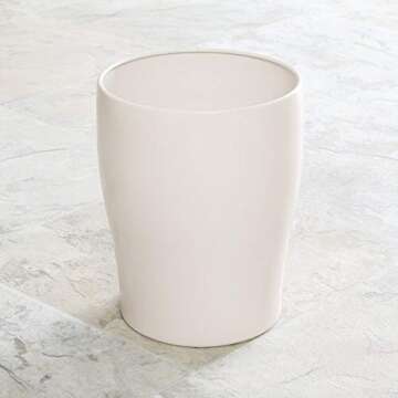 Show more This versatile and stylish round waste can is designed to seamlessly blend into any home or office setting. With its compact profile, it fits effortlessly into tight spaces such as under sinks, desks, or cabinets, providing discreet yet functional waste management. Crafted by mDesign, a brand recognized for its commitment to quality and innovative design, this waste bin does not just serve a utility; it enhances your décor.
