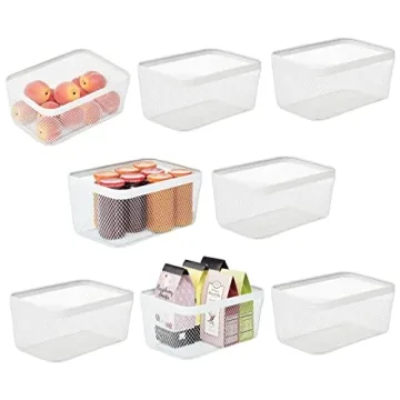 The mDesign Steel Food Storage Organizer Bin Mesh Basket is an essential addition to any home looking to elevate its organization game. Crafted with a durable steel wire frame and finished in a sleek white color, these bins seamlessly combine functionality with style. Designed to save space, they are perfect for kitchen cabinets, countertops, pantries, and even your fridge or freezer. Their versatile nature ensures you can store a variety of food items including canned goods,...