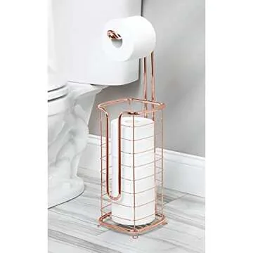 mDesign Rose Gold Free Standing Toilet Paper Holder for Bathroom with Storage