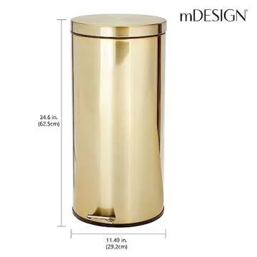 mDesign Tall 30 Liter, Large Round Metal Lidded Step Trash Can, Thin Compact Garbage Bin with Removable Liner Bucket for Bathroom, Kitchen, Craft Room, Office, Garage - Soft Brass