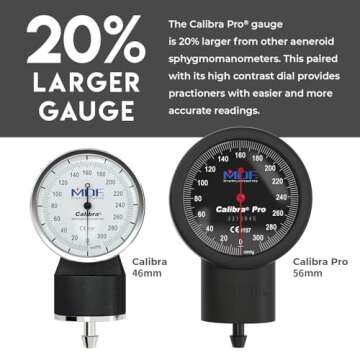 MDF Instruments, Extra Large Gauge Calibra Pro Aneroid Sphygmomanometer with Shock Guard & Adult Sized Cuff Included, Lifetime Calibration, Black Dial, Black Cuff, MDF808B11