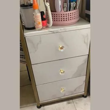 MDPLY 5 Pack Crystal Glass Cabinet Knobs - 30mm Clear Diamond Shape Decorative Gold Base Pulls Handles for Drawer Dresser Kitchen Cabinets Wardrobe Bathroom Vanity Desk (Gold)