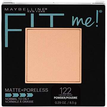 Show moreDiscover the flawless finish of the Me! Matte + Poreless Foundation Powder in the beautiful shade of 122 Creamy Beige. This essential makeup product is designed for all-day wear, providing a velvety texture that minimizes the appearance of pores and accidents on oily skin. With a lightweight formula, it seamlessly blends into your complexion, giving a natural finish that feels like your skin but better. The pack of 2 allows you to never run out of your favorite powder and is perfect for use at home or on the go. Say goodbye to touch-ups and hello to long-lasting coverage as this powder absorbs excess oil throughout the day, ensuring you stay shine-free and looking fresh longer.