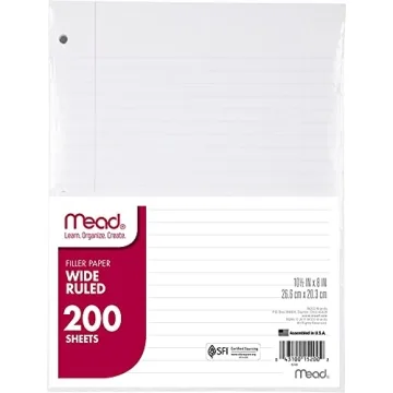 Show moreIntroducing the ultimate solution for all your note-taking and writing needs: the Mead Loose Leaf Paper. This premium wide-ruled filler paper is designed to meet the demands of students, professionals, and creative writers alike. With a generous size of 10.5" x 8", every sheet of this paper provides ample space for your thoughts, ideas, and creativity. Perfectly punched for 3-ring binders, these sheets allow for easy organization and transport, ensuring that your notes are always just where you need them when inspiration strikes. Whether you're drafting letters, compiling research for genealogy projects, or jotting down critical grocery lists, this paper offers a durability that withstands the rigors of daily use. Made with sturdy, thick material, it minimizes bleed-through, allowing for a cleaner and more polished presentation of your writing.
