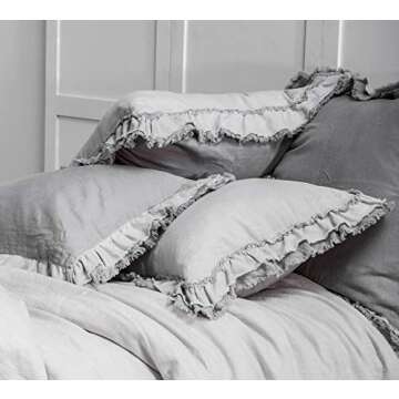 meadow park Washed French Linen 2 Pieces Square European Pillow Shams, Reversible, 26 inches x 26 inches, Super Soft, Ruffle Style, Grey Color