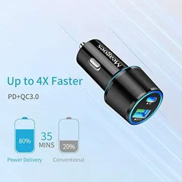 Meagoes USB C Car Charger, 48W 2-Port Fast Charging Adapter with PD&QC3.0 Compatible for iPhone 16/15 Pro Max/Samsung Galaxy S25/S24/S23/S22/S21/S20 Plus/Ultra/Note 20/10, iPad Pro -3.3ft Type C Cord