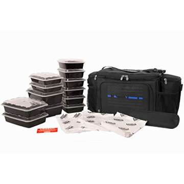 Meal Prep Insulated Lunch Bag - Isobag 6 Meal Thin Blue Line - Large Insulated 6 Meal Prep Bag/Cooler - Includes 12 Reusable BPA-Free Iso Containers, 3 Ice Packs & Padded Shoulder Strap