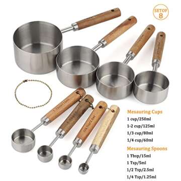 baking experience: a complete 8-piece measuring cup and spoon set!