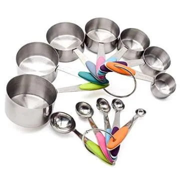 Measuring Cups and Spoons Set Stainless Steel of 12 for Dry and Liquid Ingredients Includes Metal 7 Cup and 5 Spoon with Magnetic Measurement Conversion Chart
