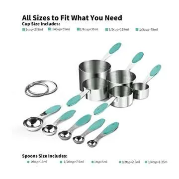 Measuring Cups : U-Taste 18/8 Stainless Steel Measuring Cups and Spoons Set of 10 Piece, Upgraded Thickness Handle(Aqua Sky)