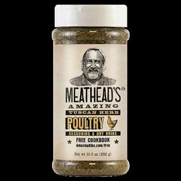 Show moreUnleash the full potential of your cooking with Meathead's Amazing Tuscan Herb Poultry Seasoning & Dry Brine. This unique blend of herbs and spices captures the essence of Tuscany, designed specifically for enhancing the flavors of poultry, pork, veal, seafood, and even veggies. Each ounce of this seasoning is formulated to elevate your meals, making them more delectable and restaurant-quality. Whether you're grilling, roasting, or sautéing, this versatile blend delivers authentic Italian flavors that will leave your guests savory and satisfied.