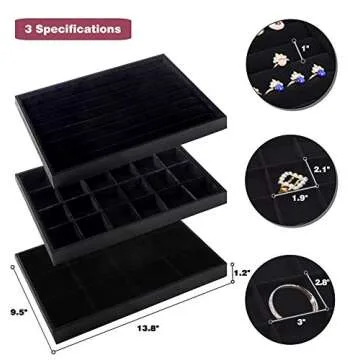 Mebbay Stackable Velvet Jewelry Trays Organizer, Jewelry Storage Display Trays with Full Artificial Leather Cover for Drawer, Earring Necklace Bracelet Ring Organizer, Set of 3 (Black)