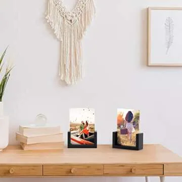 Show moreIntroducing the MEBRUDY 4x6 Picture Frame 2 Pack – a stylish and modern way to showcase your cherished memories! Designed with a unique U-shaped silhouette, these frameless picture frames offer an eye-catching display that will undoubtedly enhance any space. Crafted from double tempered glass covers, they not only provide a remarkable view of your favorite photographs but also ensure durability and safety. The elegant black wooden base frames the glass beautifully, making these photo displays perfect for your home, office, or any décor style you desire.