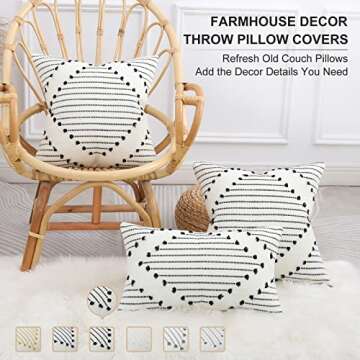 Mecatny Boho Throw Pillow Covers 20X20 Set of 2, Farmhouse Decorative Pillow Covers for Couch Sofa Living Room, Black & Cream White