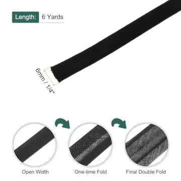 MECCANIXITY 1/4 Inch Double Fold Bias Tape Cotton Continuous Bulk Bias Tape for Sewing,Seaming Quilting Hemming Binding Crafts (Gray Black 6 Yards)