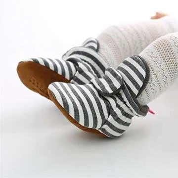 - BEST GIFT: These adorable striped booties are perfect for any occasion, including holidays, birthdays, and baby showers. Ideal for crawling, playing, or just stylishly lounging at home!