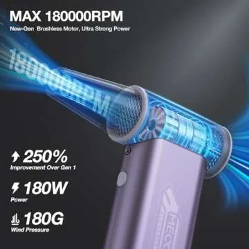 Show moreIntroducing the MECO ELEVERDE Compressed Air Duster, a revolutionary cleaning solution designed to exceed your expectations. Featuring an impressive high-speed brushless motor with a maximum rotational speed of 180,000 RPM and a powerful wind pressure of 180g, this electric air duster will redefine how you tackle dust and debris. With a robust 180W power output, MECO's latest model delivers a remarkable 250% performance boost compared to its predecessor, making it incredibly effective in cleaning hard-to-reach areas. Whether you are maintaining your electronic devices or tidying up your workspace, this duster ensures every corner sparkles.