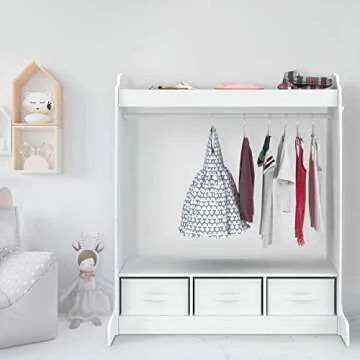 mecor Kids Dress Up Storage with Mirror, Clothes Hook, Shelf and Rod - Kids Armoire with Fabric Storage Bins (White)