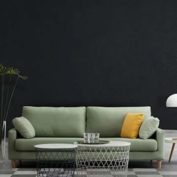 Show more Transform your living space with the Mecpar Black Contact Paper. Measuring a generous 17.71 inches by 118 inches, this durable black wallpaper covers approximately 14.5 square feet, making it ideal for a variety of applications. The unique textured design not only adds elegance to your surroundings but also enhances the aesthetic appeal of your furniture and decor. Perfect for anyone looking to revamp their space without breaking the bank or the effort!