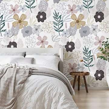 Mecpar Floral Peel and Stick Wallpaper 17.71'' x 78.7'' Pink Perennial Blooms Floral Wallpaper Floral Contact Paper Vinyl Self Adhesive Removable Waterproof Wallpaper for Bathroom Cabinet Decorative
