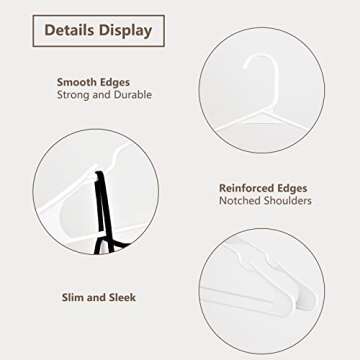 MecTo Hangers 50 Pack, Plastic White Notched Coat Hanger Space Saving Tubular Heavy Duty Clothes Hangers for Everyday Standard Use on Suits Coats Pants Dress Shirts (White, 50 Pack)