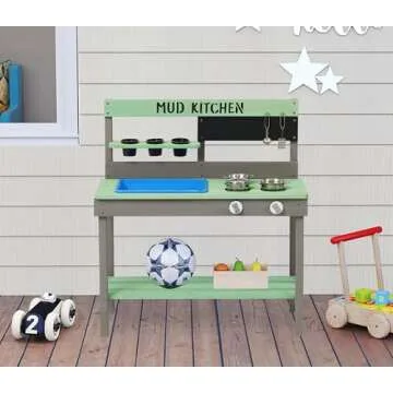 Show moreIntroducing the Mederra Kids Play Kitchen, a beautifully crafted wooden mud kitchen designed to inspire endless hours of imaginative play. Constructed from high-quality solid wood, this play kitchen is not just durable; it’s built to withstand outdoor adventures. With its versatile design, children can engage in both cooking and water play activities, making it a fantastic addition to any backyard or patio setting. Measuring 36.2'' x 14.96'' x 36.2'' (H), it offers ample space for little hands to explore their culinary skills while incorporating elements of nature into their play. The combination of fun and functionality ensures that this kitchen will become a favorite play spot for your child.