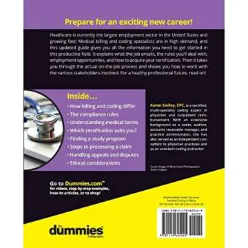 Show moreIf you or someone you know is contemplating a career in medical billing and coding, look no further than the insightful guide, Medical Billing & Coding For Dummies. This remarkable book is designed to serve as a foundational resource for anyone interested in this dynamic field. Not just a textbook, it offers a wealth of practical information, advice, and insights that are often overlooked in formal education settings. Packed with straightforward and relatable content, the book effortlessly guides readers through the essential aspects of medical billing and coding, preparing them for what lies ahead in their professional journey.