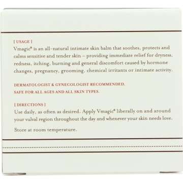The salve comes in a convenient 2-ounce jar, perfect for on-the-go relief. It’s formulated without synthetic dyes, perfumes, parabens, preservatives, hormones, steroids, or soy – which means it’s pure and safe for your body. Ideal for soothing dryness and irritation, Vmagic provides instant moisturizing benefits, helping you feel comfortable in your skin again.