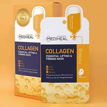 Mediheal Official [Korea's No 1 Sheet Mask] - 10 Pack Collagen Essential Lifting & Firming Mask/Collagen & Peptides & Beta Glucan Contained Anti-Wrinkle and Soothing Facial Mask Sheet