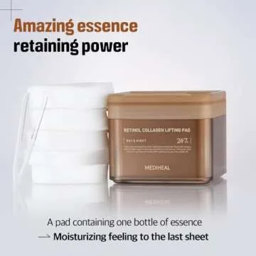 The Mediheal Retinol Collagen Lifting Pad features an advanced formula solidified by 99% pure retinol and 300 dalton low-molecular collagen. This innovative combination aims to lift, rejuvenate, and improve your skin's overall appearance. You can expect a noticeable elevation in collagen production and moisture retention, making your skin feel refreshed and youthful.