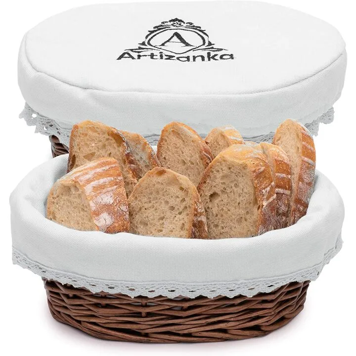 Medium Bread Basket - 11x8" Wicker with Removable Liner & Cover