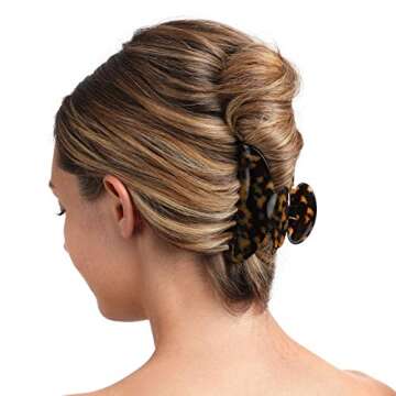 Show moreIntroducing our exquisite Medium Claw Hair Clips for Women, featuring a stunning tortoise shell design that adds a touch of elegance to your hair styling routine. These beautiful jaw clips are not only visually appealing but also incredibly practical, designed to hold your hair securely while allowing you to experiment with various hairstyles. Made from everlasting luxurious cellulose acetate, these clips provide both charm and durability, ensuring they stand the test of time while keeping your hair perfectly styled.