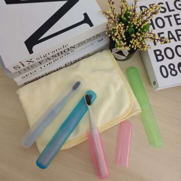Medsuo 4pcs Plastic Toothbrush Case Travel Cover Holder Storage (Pink, Blue, Green and White)