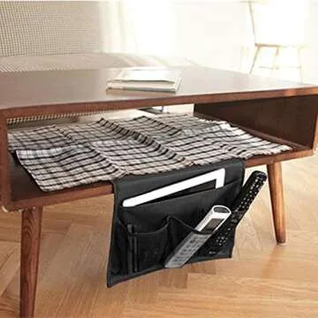 Meeall Bedside Caddy 4 Pockets Bedside Organizer Caddy Fit Tablet Magazine Phone Glasses, Under Mattress Remote Control Holder Storage Organizer, Black