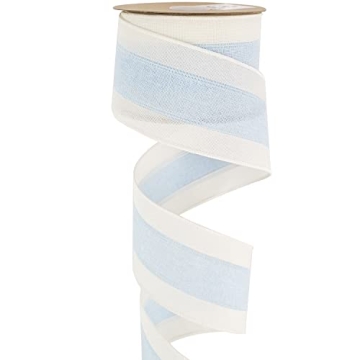 MEEDEE Blue and White Stripe Ribbon - 2.5 Inch Wired Ribbon for Crafting and Decor