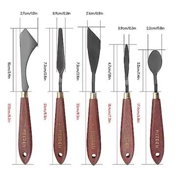 The unique design of these knives includes comfortable wooden grips that enhance your control and comfort, allowing for an effortless painting experience. The ergonomically crafted handles cater to the needs of both professional artists and hobbyists alike, providing a natural feel for every application.