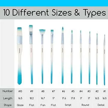 MEEDEN Watercolor Brush Set,10 Professional Watercolor Paint Brushes for Artists, Soft Nylon Hair, Long Handle, Detail, Filbert, Fan, Flat, Painting Brush Set for Watercolor Acrylic Painting
