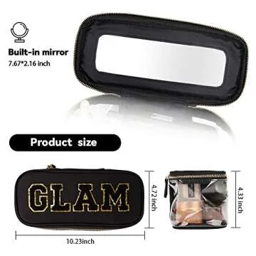 Show moreIntroducing the MEEJUNE Portable Chenille Letter Clear Preppy Makeup Zipper Bag, a perfect blend of style and functionality designed for the modern individual who appreciates organization on-the-go. This exquisite, waterproof travel storage purse is not just a makeup bag; it’s a versatile companion whether you are heading out for a vacation, a quick trip to the gym, or simply need to keep your bathroom essentials in check. Adorned with adorable handmade glittering chenille letter patches, the bag offers a personalized touch that resonates well with youthful spirits and trendsetters alike.